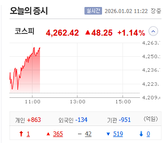 코스피 : 4,262.42